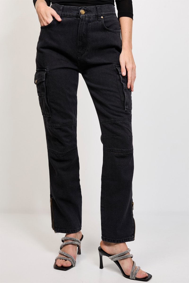 Calças de ganga cargo - Preto