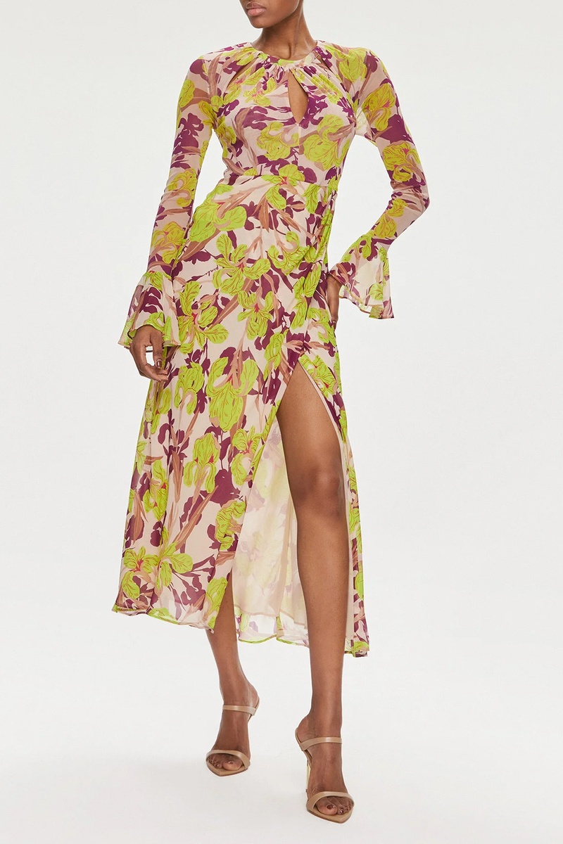 Vestido traçado - Verde-lima e rosa