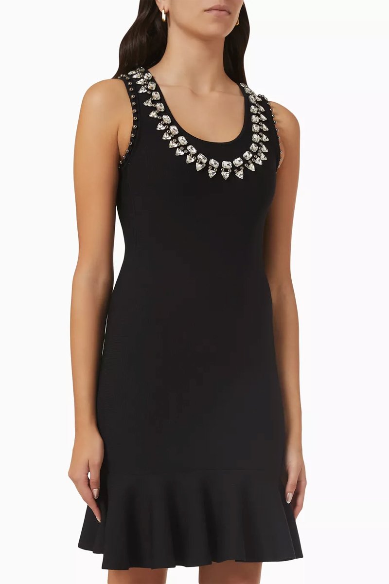 Gola redonda com strass.