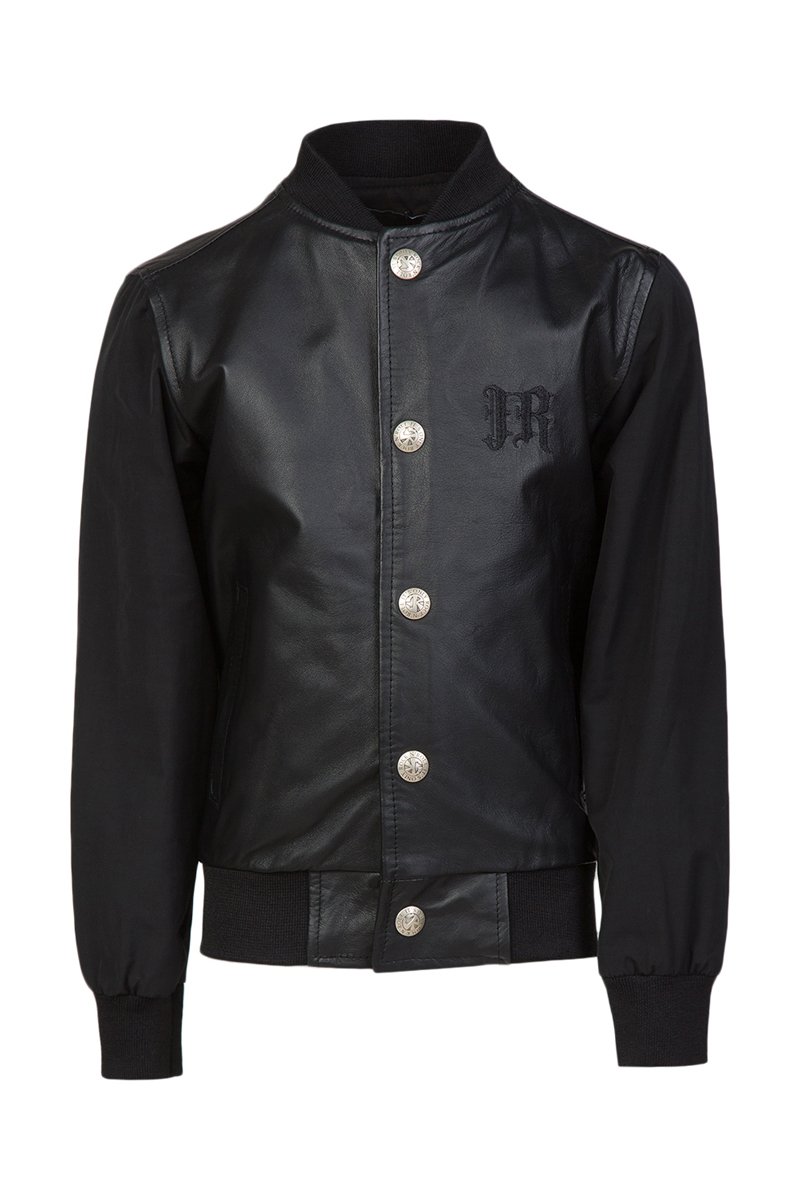 Bomber em couro de cordeiro.