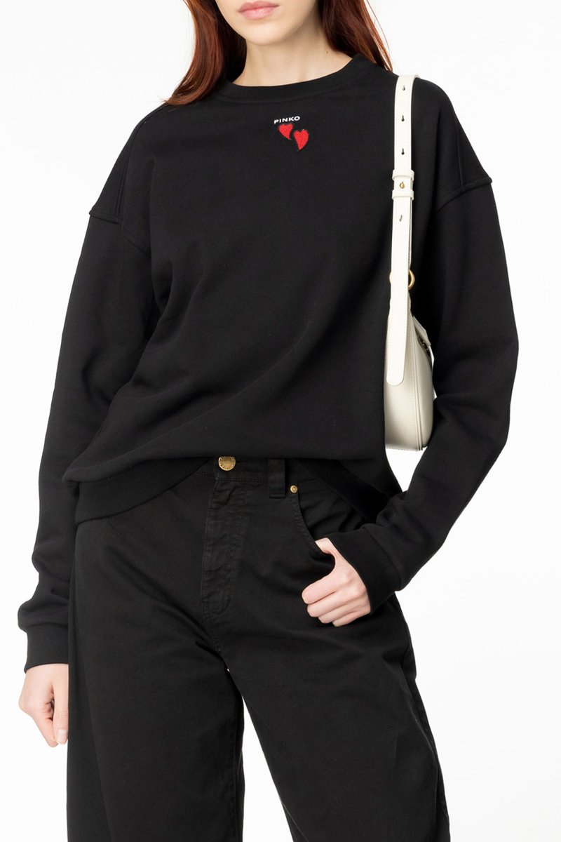 Estampado de corações bordado e logótipo à frente.