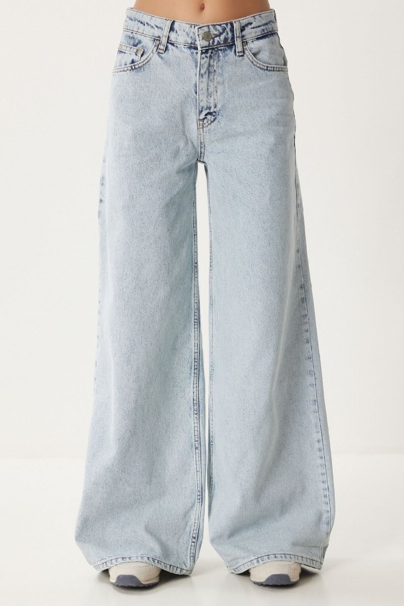 Calças de ganga wide leg - Azul-celeste