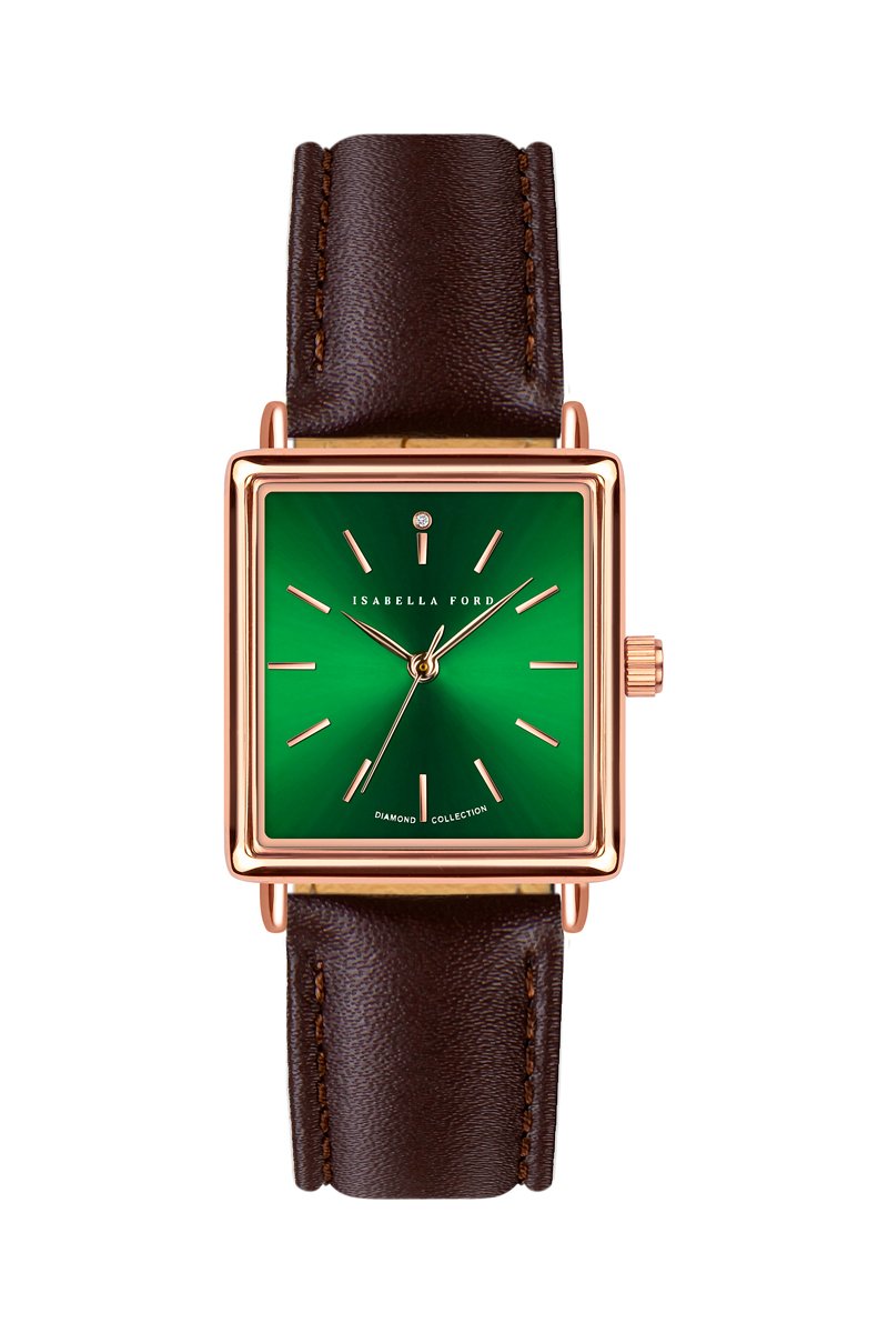 Relógio de quartzo em couro e diamante Elisabeth