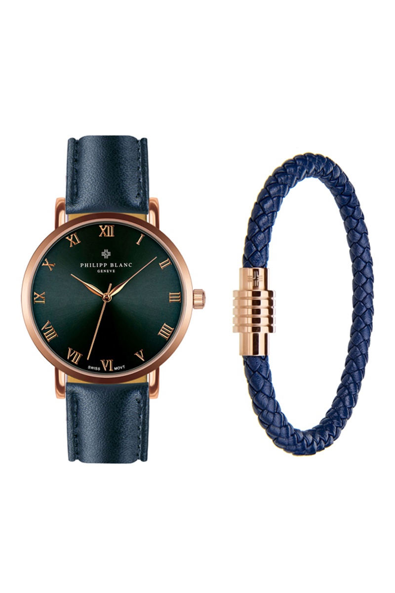 Coffret relógio de quartzo diamantes e pulseira em couro