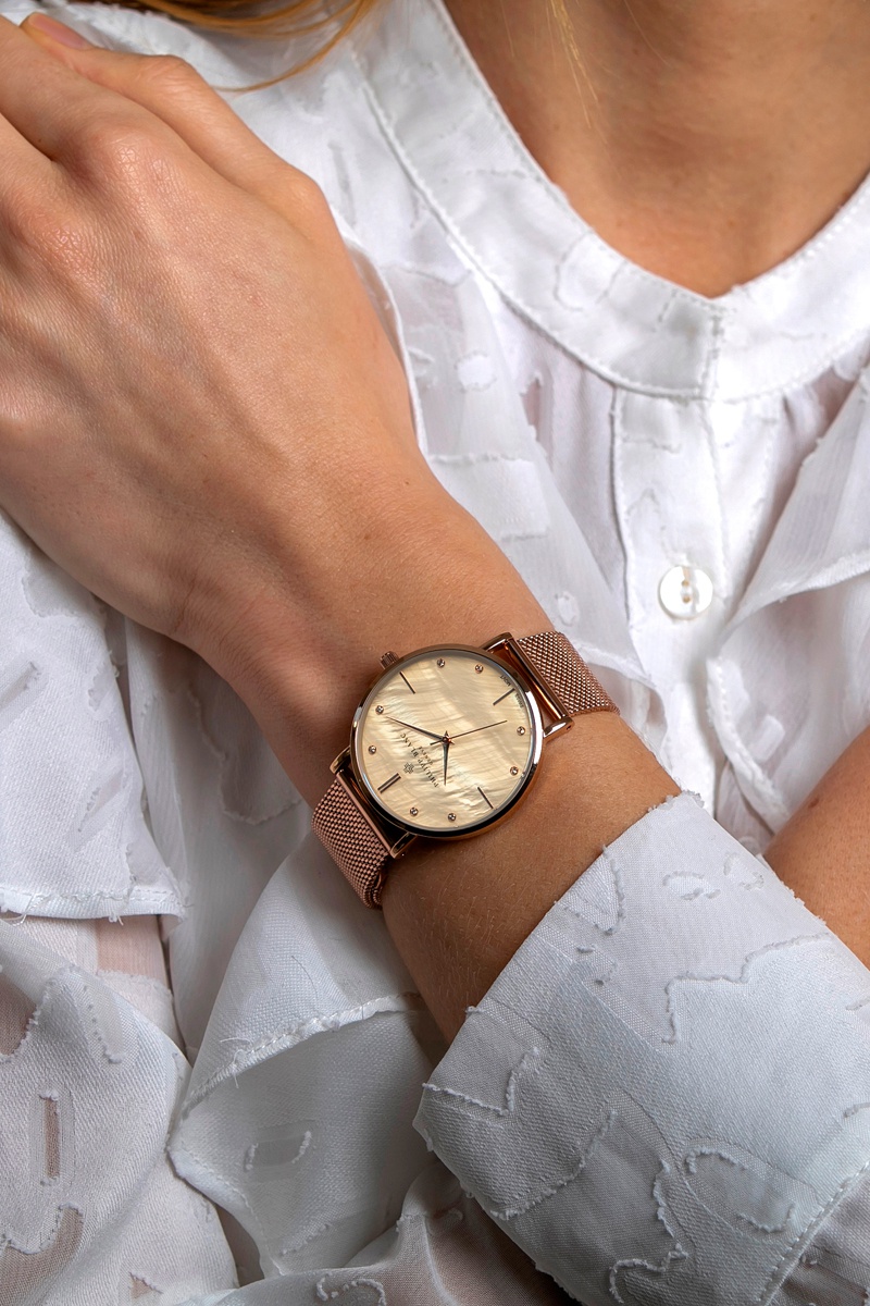 Relógio de quartzo em aço e madrepérola - Dourado-rosa