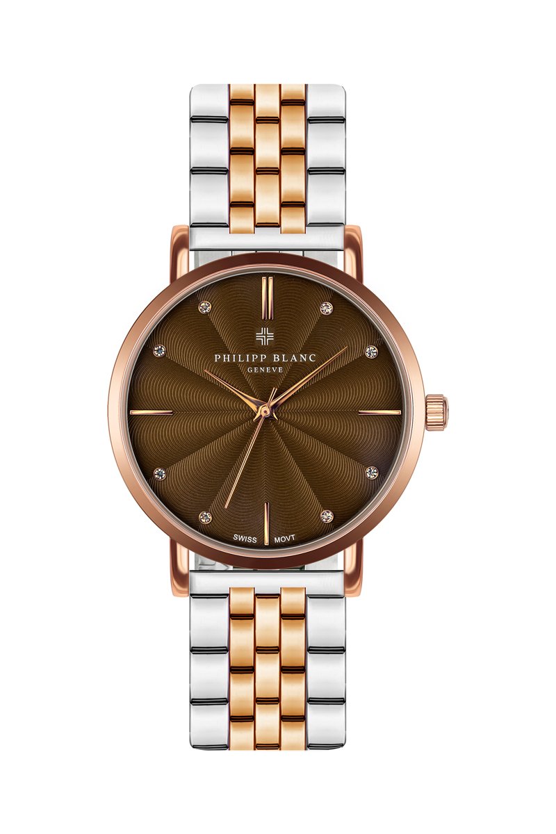 Relógio de quartzo em aço inoxidável - Prateado e dourado-rosa