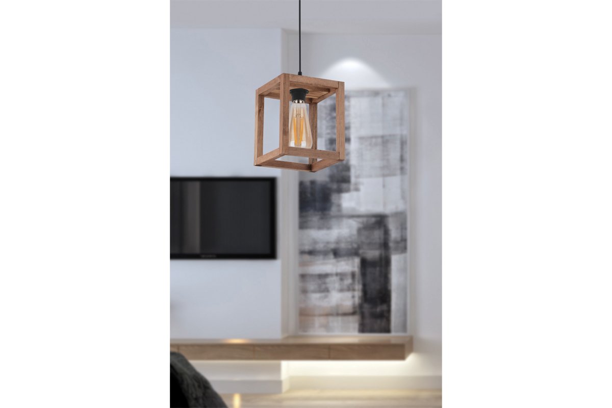 Candeeiro suspenso em madeira Cube - Natural