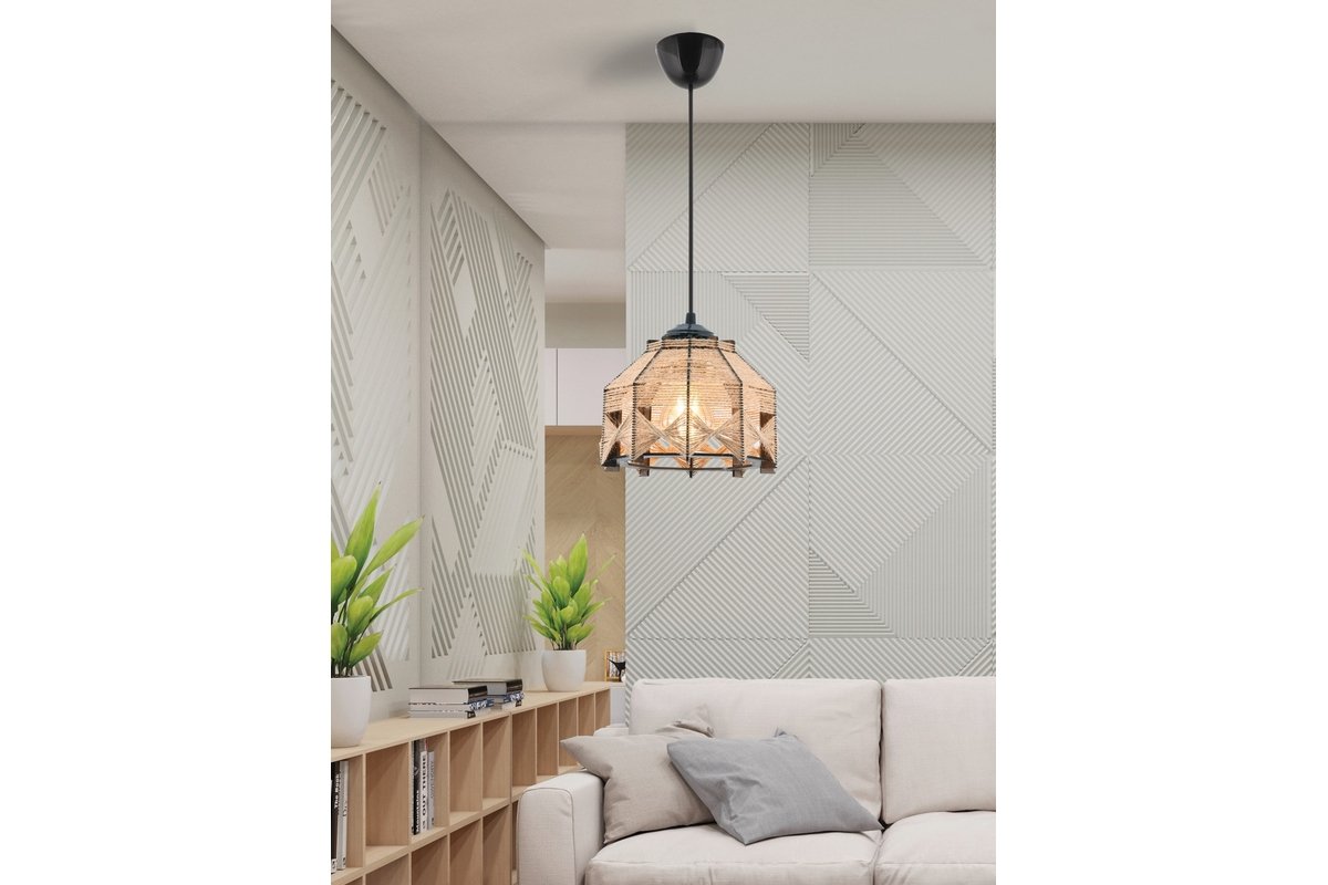 Candeeiro suspenso em madeira Jutta Jute - Preto e camel - 45-60 W