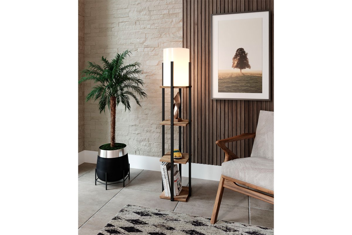 Candeeiro de pé Nora SRC - Preto e imitação de madeira - 60 W