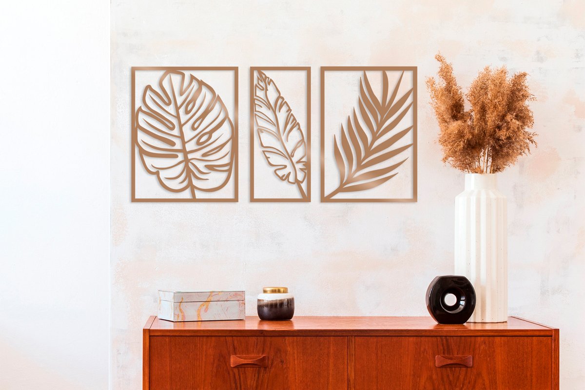 3 decorações de parede Leaf 2 - 80 x 38 cm - Dourado-rosa