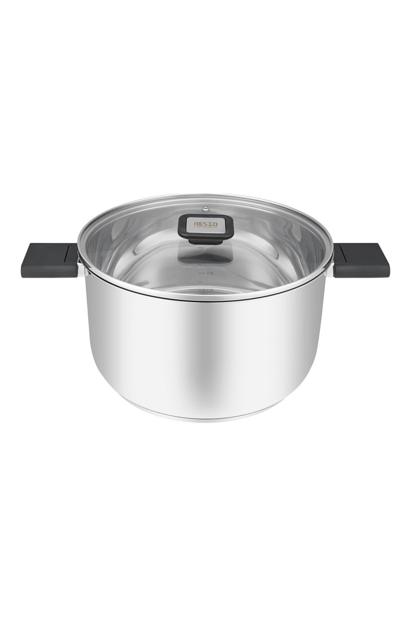 Panela em aço inoxidável e tampa com válvula anti-vapor.
