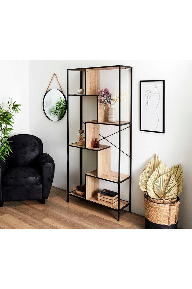 Móvel de arrumação - Preto e imitação madeira