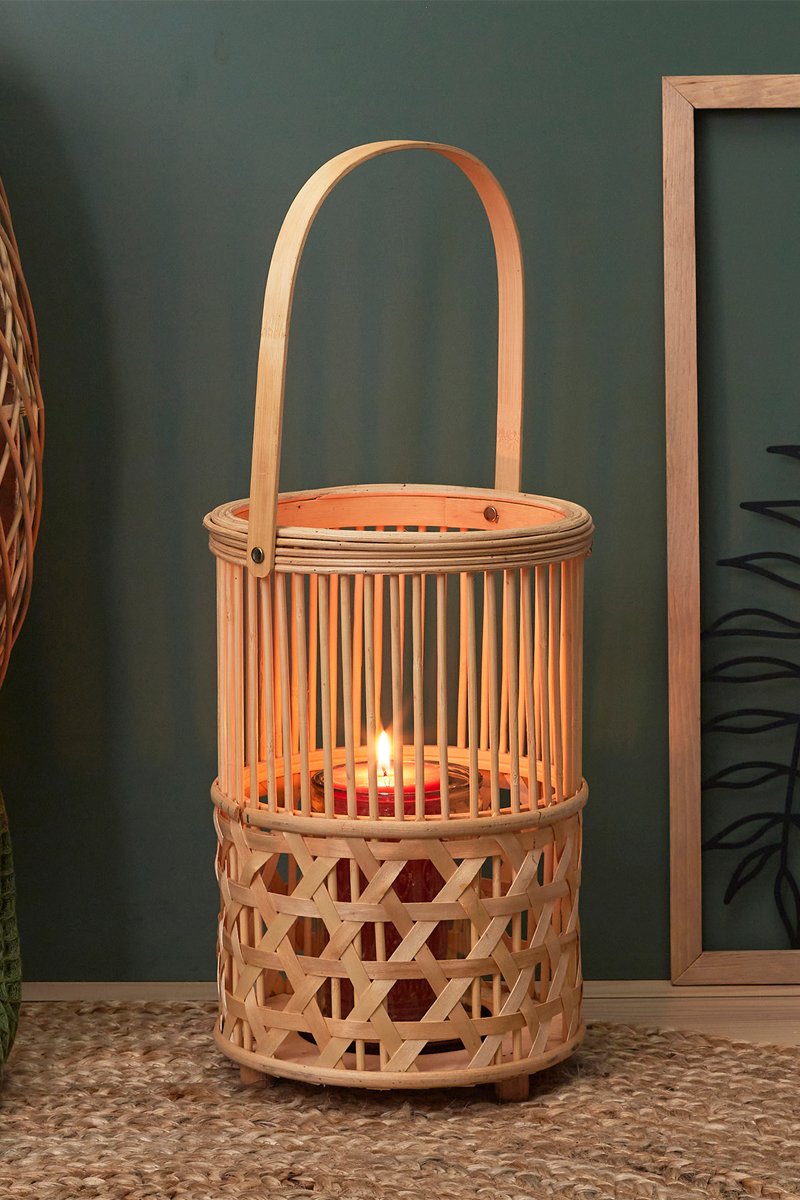 Candeeiro em bambu - 21 x 21 x 51 cm - Natural