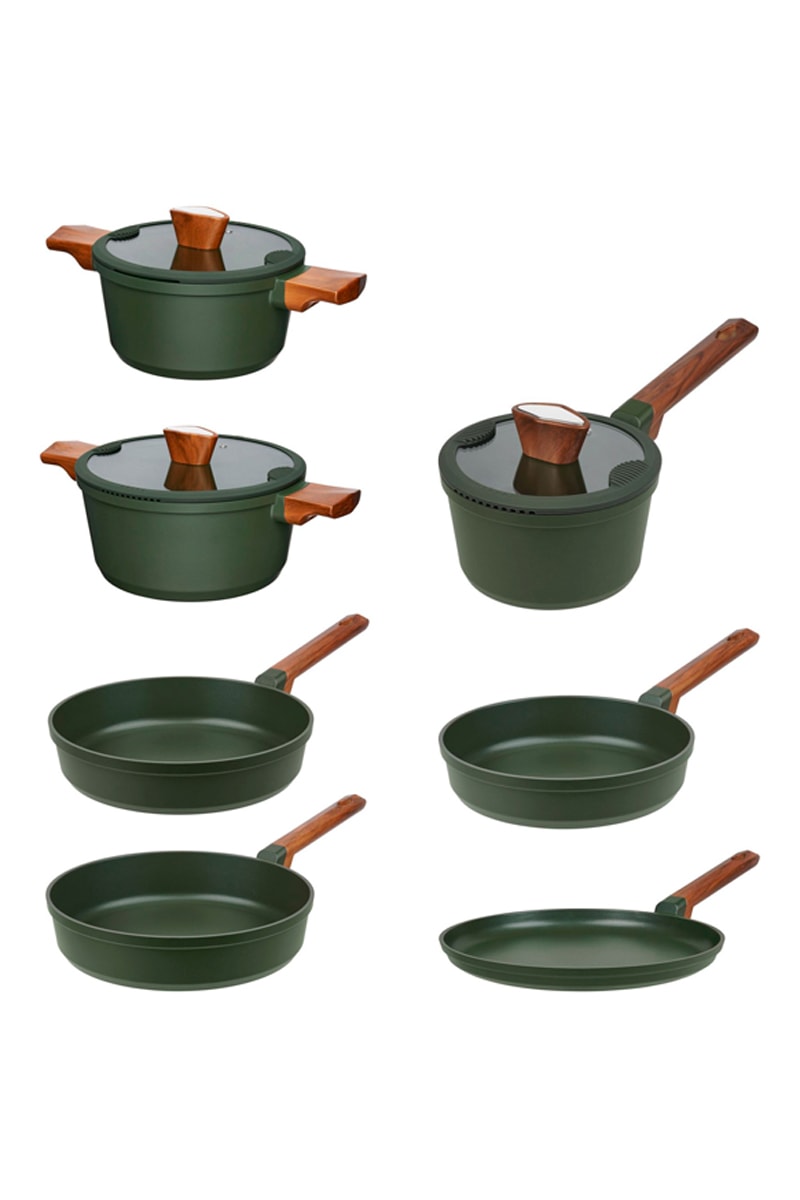 2 tachos, 1 caçarola, 1 frigideira de crepes e 3 frigideiras - 16, 20, 24, 26, 28 cm