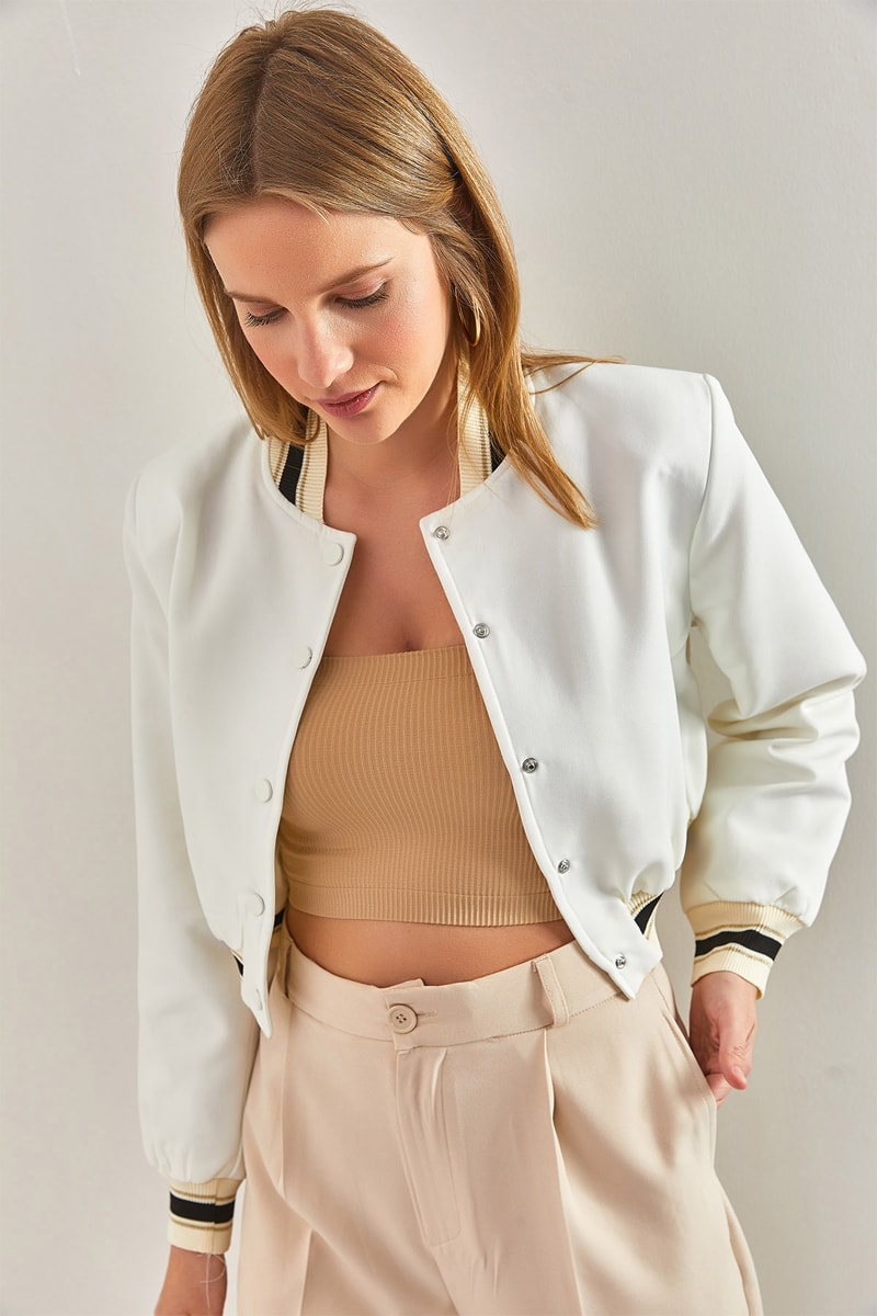 Estampado às riscas no decote, nas mangas e na base.