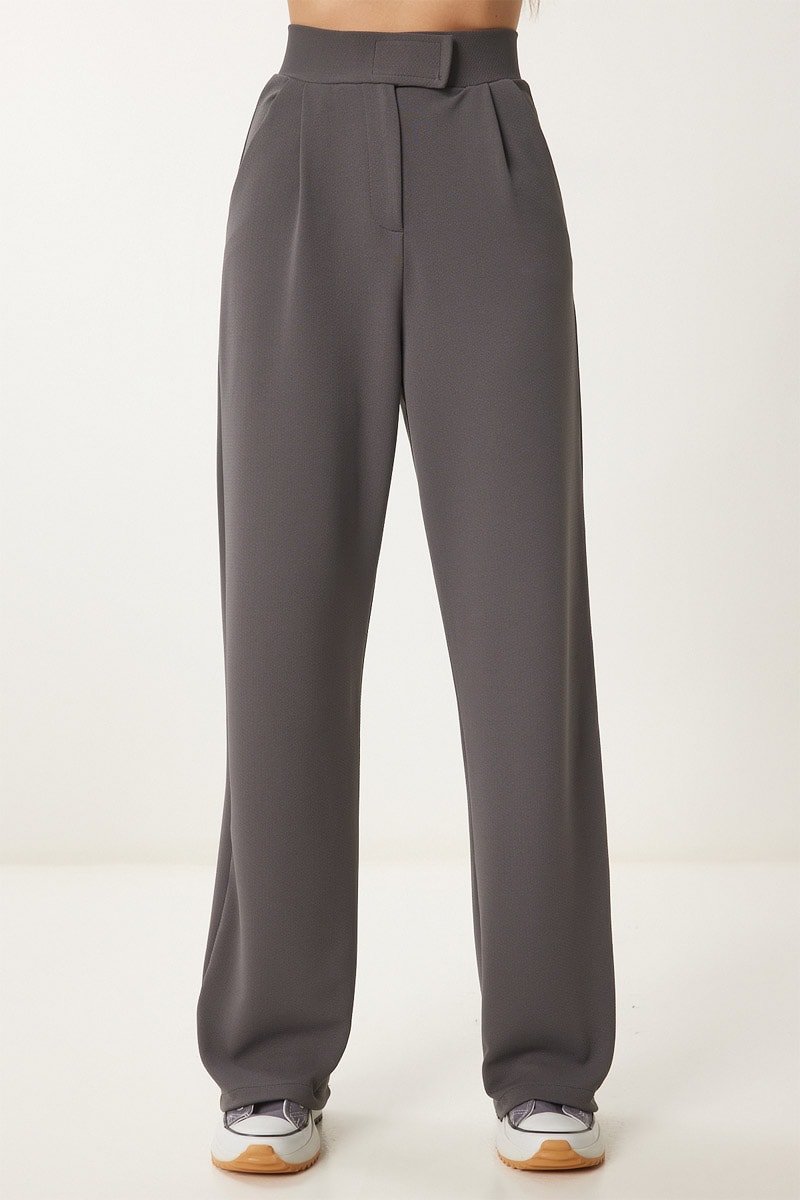Calças wide legs cintura alta - Antracite