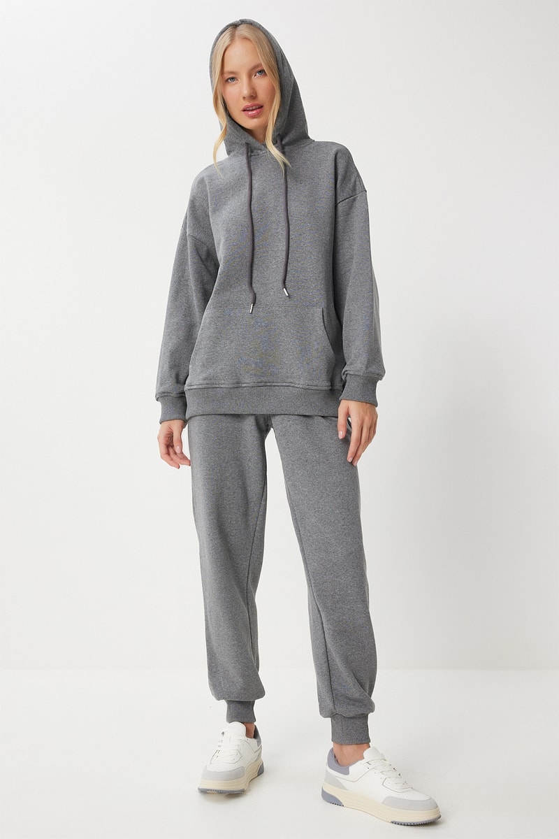 Sweat com capuz e calças de treino - Cinzento escuro mesclado