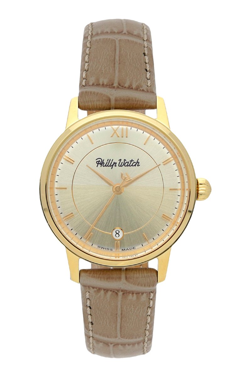 Relógio de quartzo em couro Grand Archive 1940 - Cinzento e dourado
