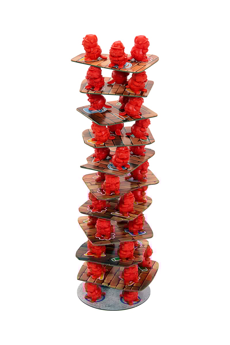 Regras do jogo: lance os dados e descubra os símbolos que aparecem, depois coloque um castor em cada símbolo correspondente nas placas de construção. Uma vez que uma placa está cheia, ela deve ser colocada numa torre. Mas ATENÇÃO, se a torre cair, o jogo termina e você perderá. O jogador com a mão mais segura e mais sortuda vence.