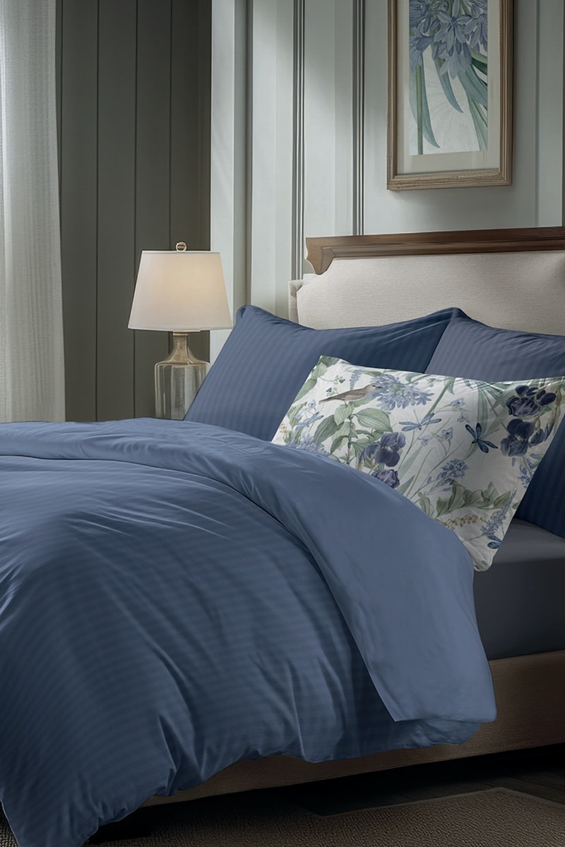 Conjunto de edredão em cetim de algodão Dobby - Azul
