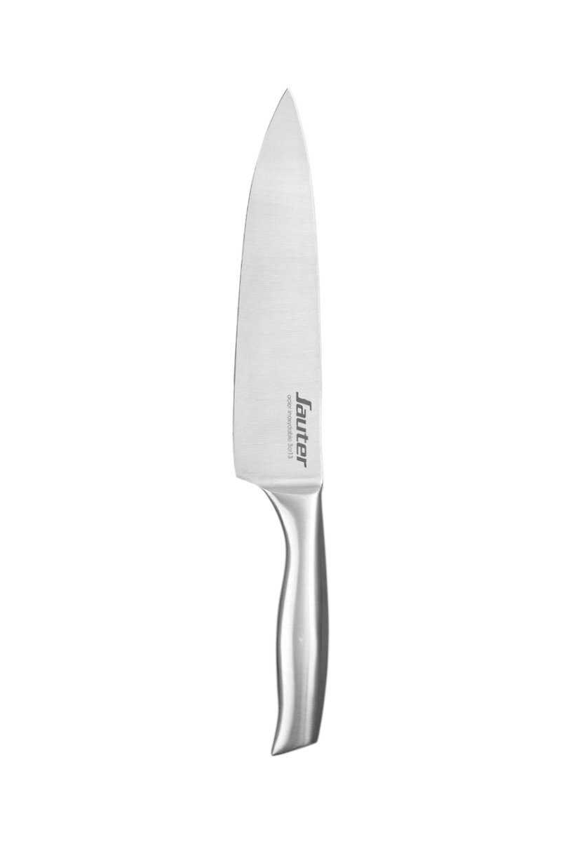 A lâmina larga e rígida desta faca de chefe multifunções é ideal para cortar, cortar, fatiar e picar.