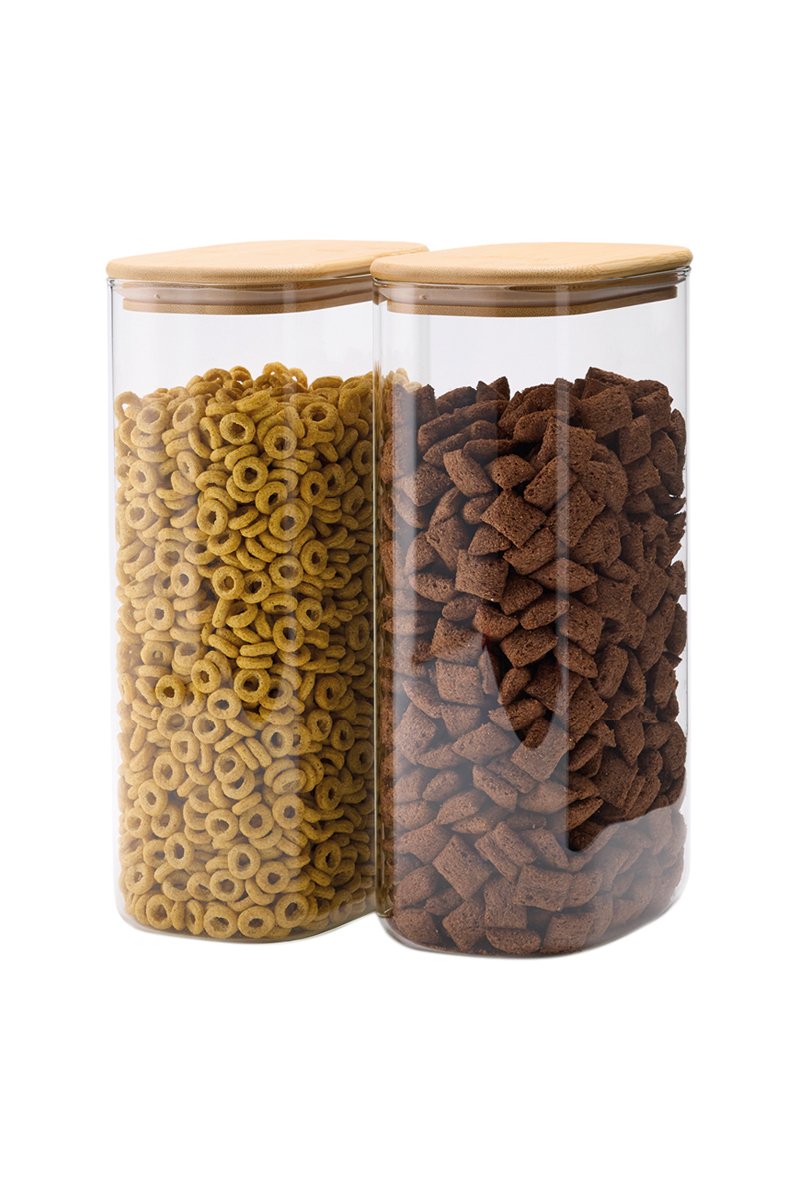 2 frascos de vidro borossilicato com tampa de bambu 2 x 3 l