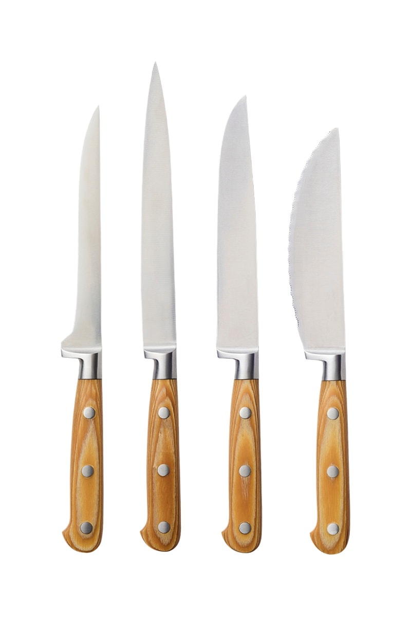 4 facas em aço inoxidável e madeira