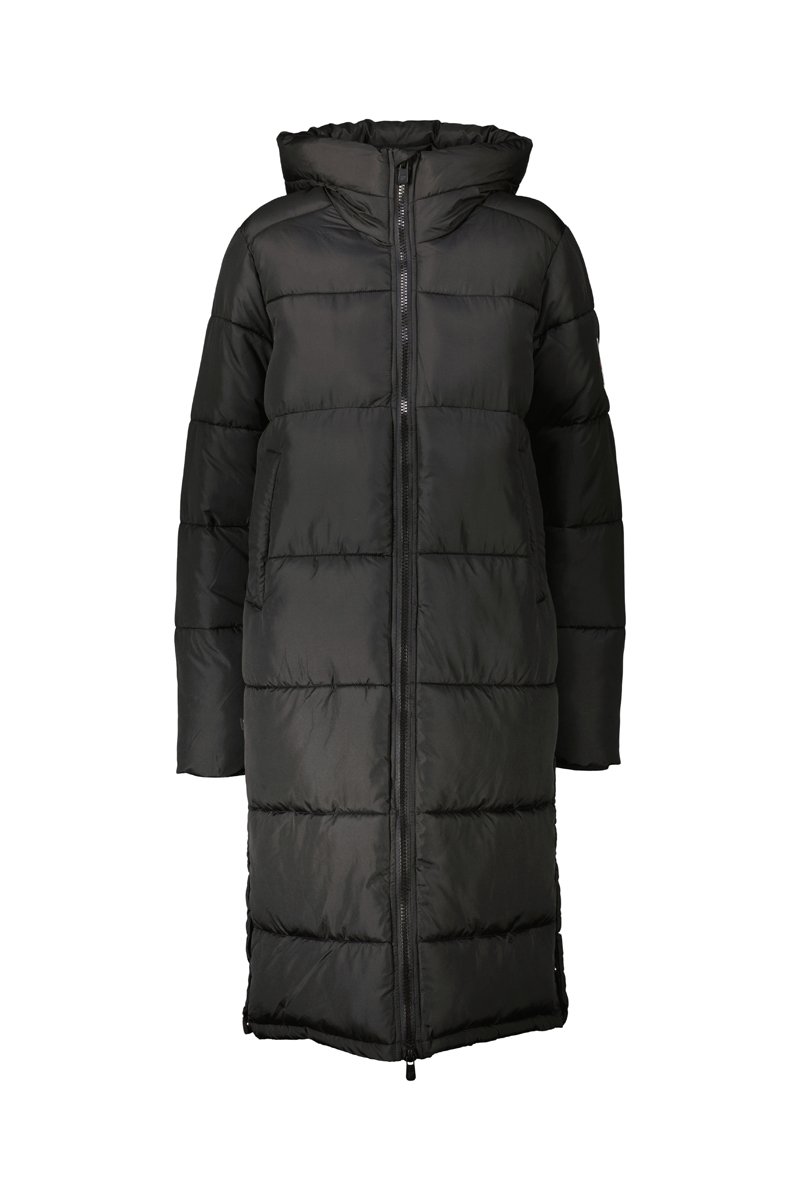 Blusão comprido acolchoado com capuz Mongie - Preto