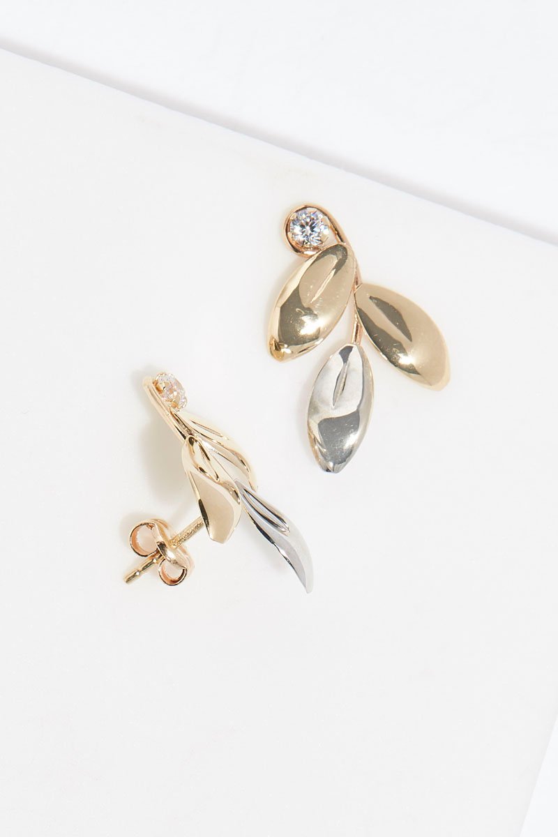 Brincos Duo petals - Ouro amarelo e ouro branco