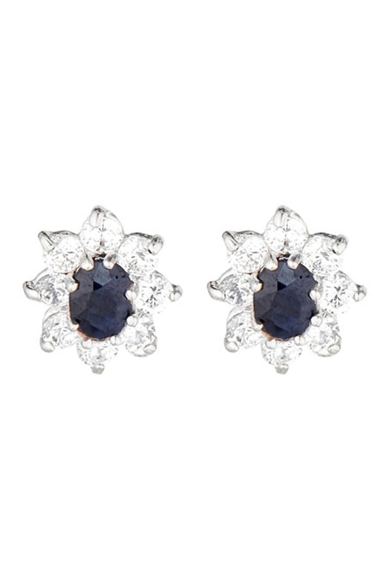 Brincos em ouro branco com uma safira e zircónios.