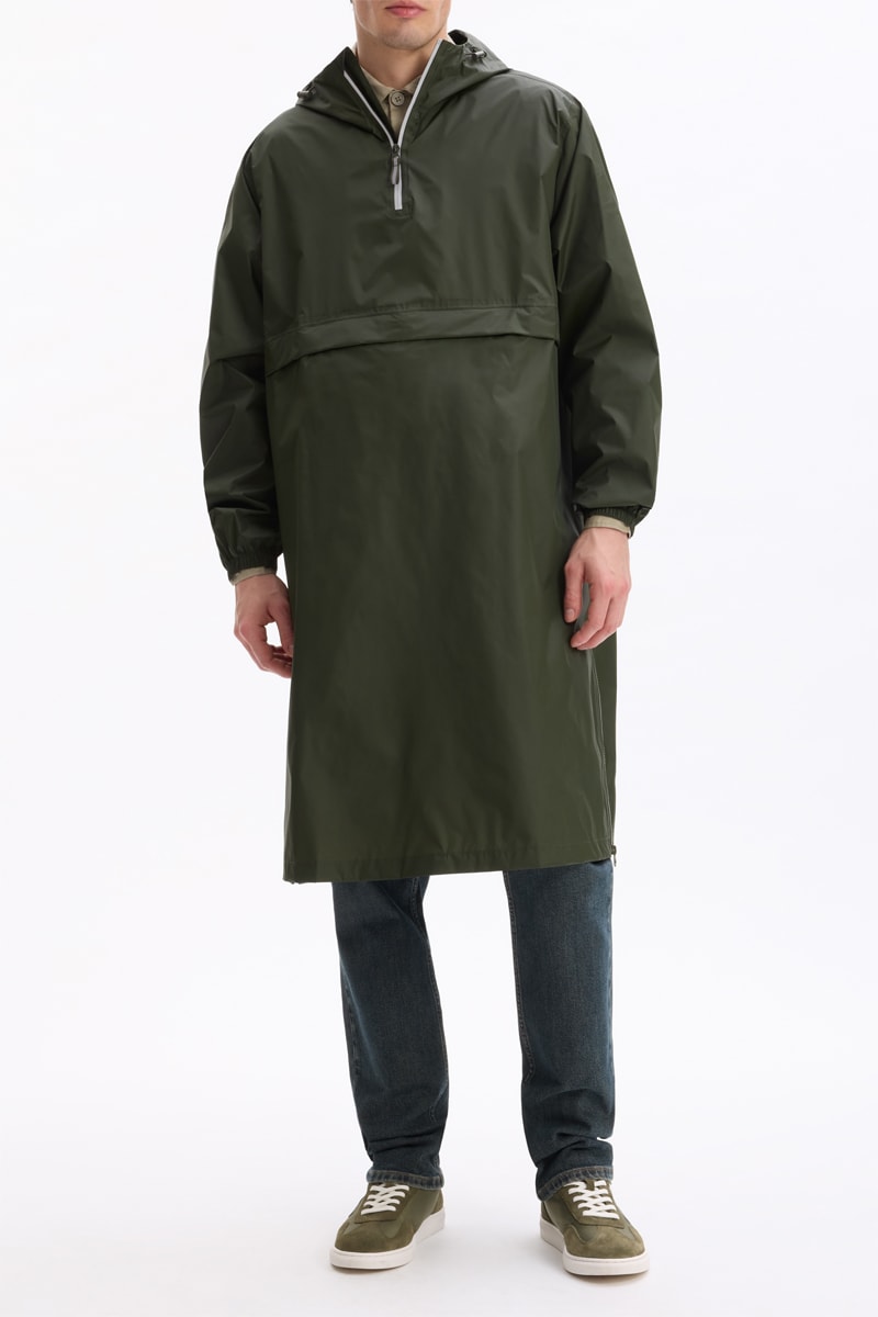 Parca com capuz com atilhos de ajuste e travões de cordão.
