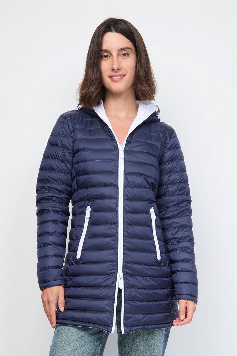 Blusão comprido reversível Moscou - Branco e azul-marinho