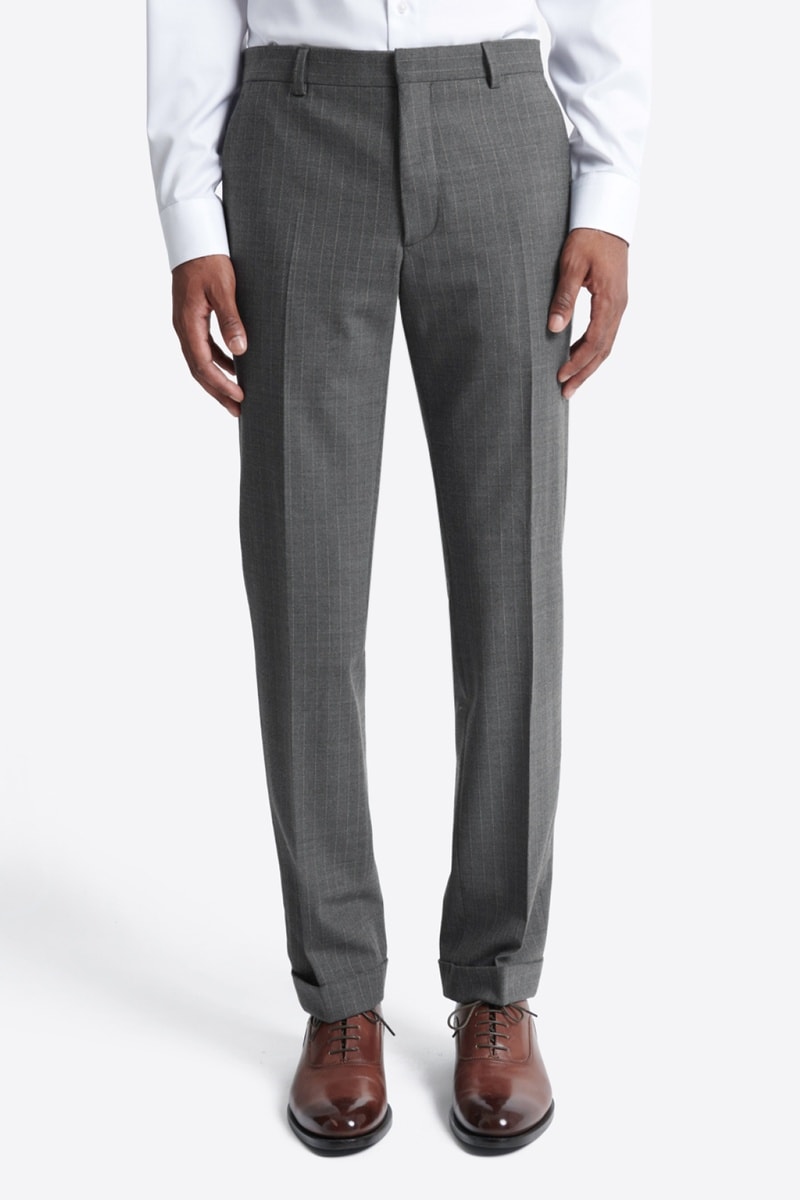 Calças de fato slim em lã - Antracite mesclado