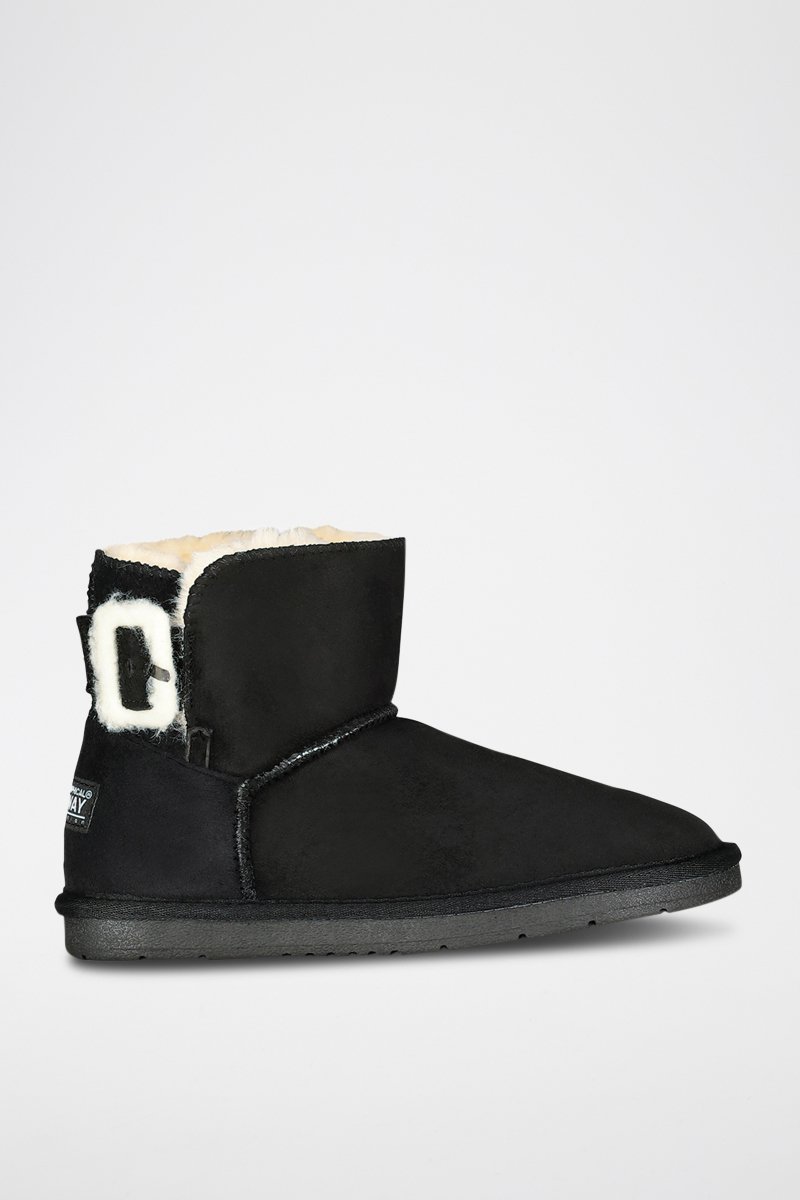 Fivela decorativa de pelo sintético a constrastar de lado.
