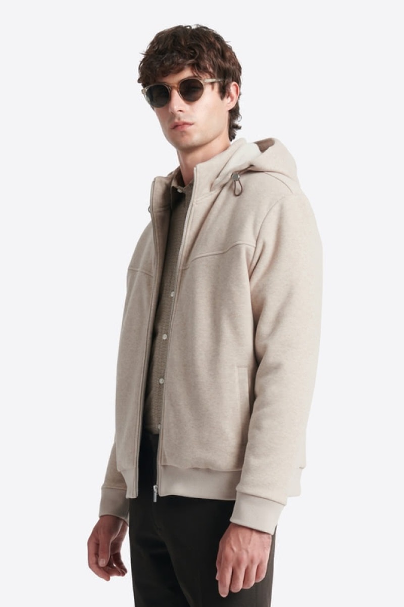 Sweat com capuz com atilhos de ajuste e travões de cordão.