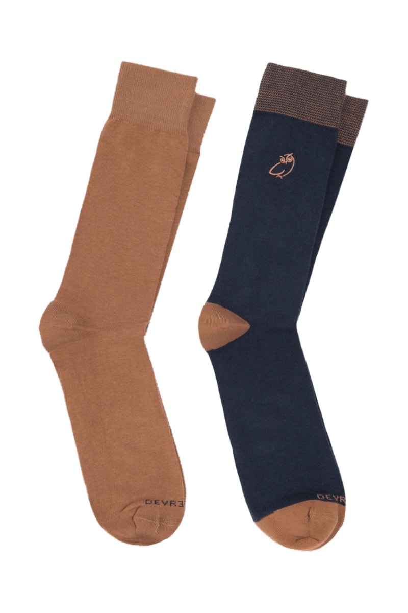 2 pares de meias em algodão biológico - Azul-marinho e castanho