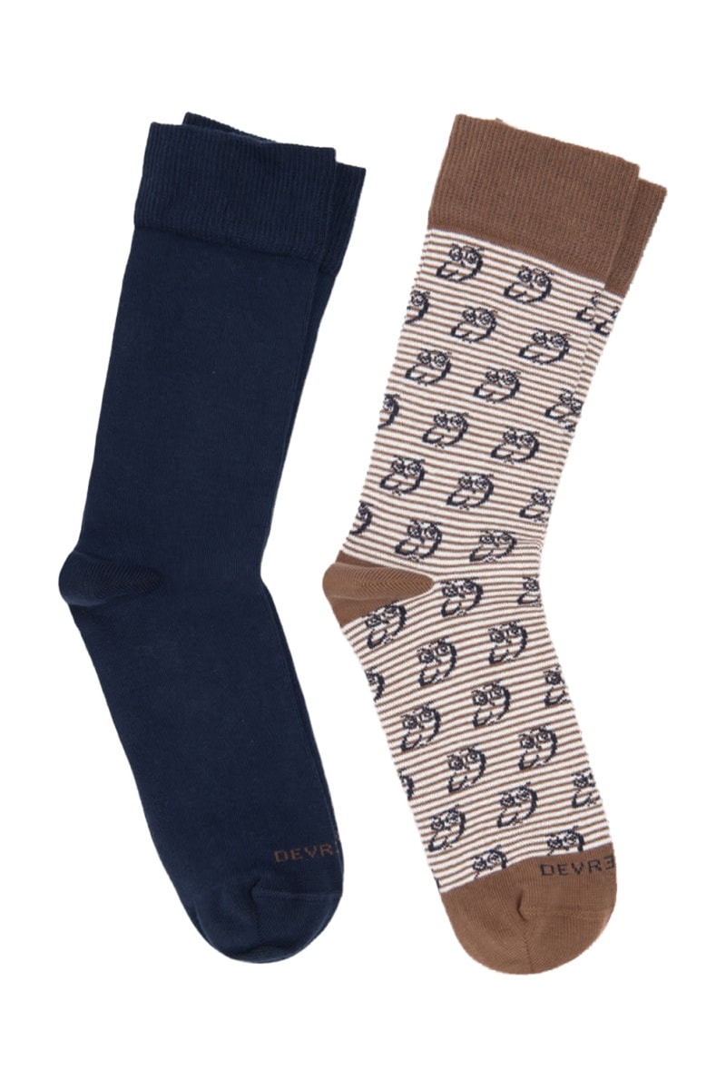 2 pares de meias em algodão biológico misturado 1 das quais com estampado decorativo.