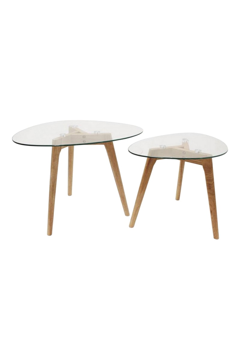 Mesa encaixável em vidro e madeira - 50 x 38 x 40 cm e 60 x 45 x 43 cm