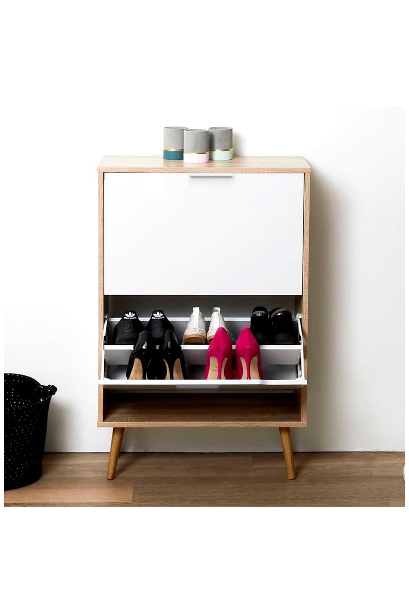Sapateira 2 portas - Natural e branco