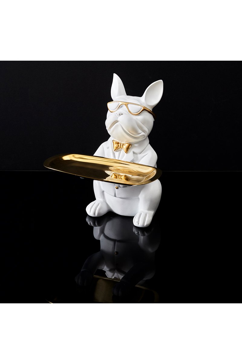 Escultura Bulldog - Branco e dourado - 23 cm