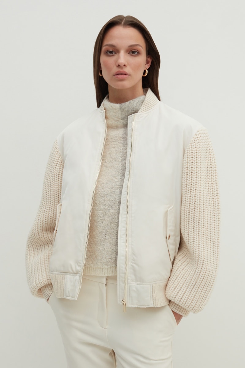 Aplicações em malha espessa e no decote, nas mangas e na base.