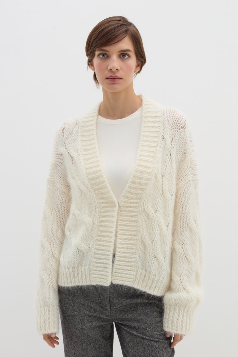 Casaco de malha em lã mérino - Cru