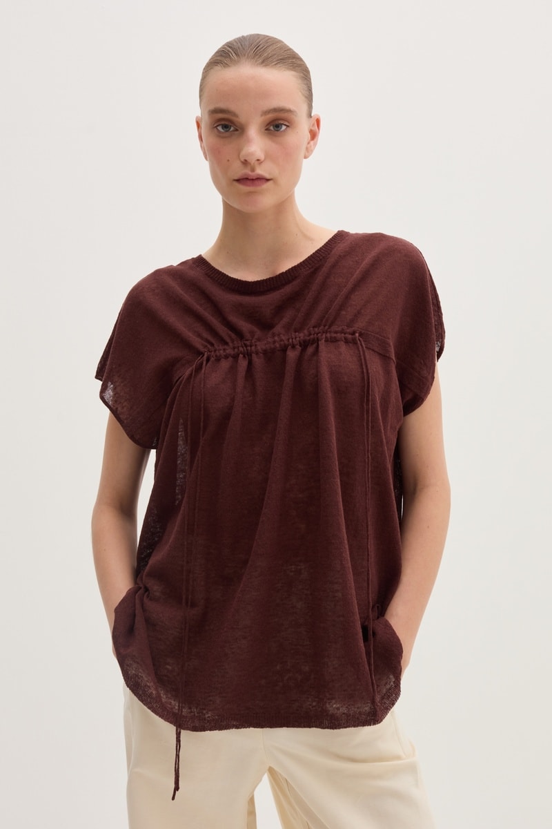Top em linho - Castanho