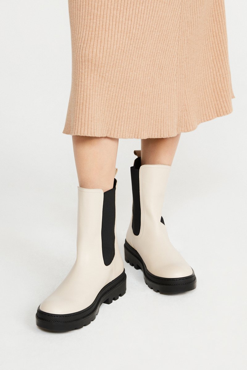 Botins Chelsea em couro - Bege