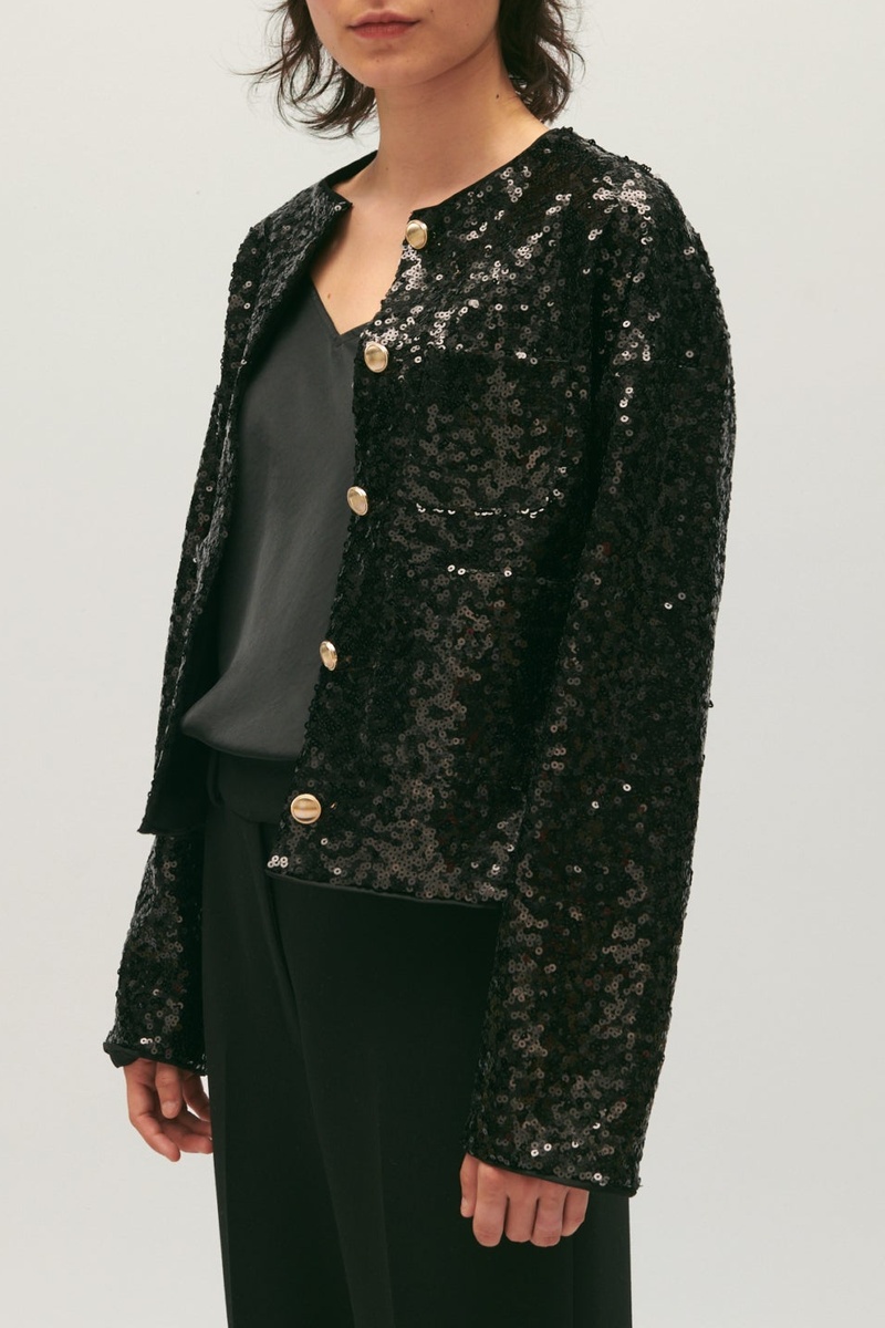 Casaco com lantejoulas.