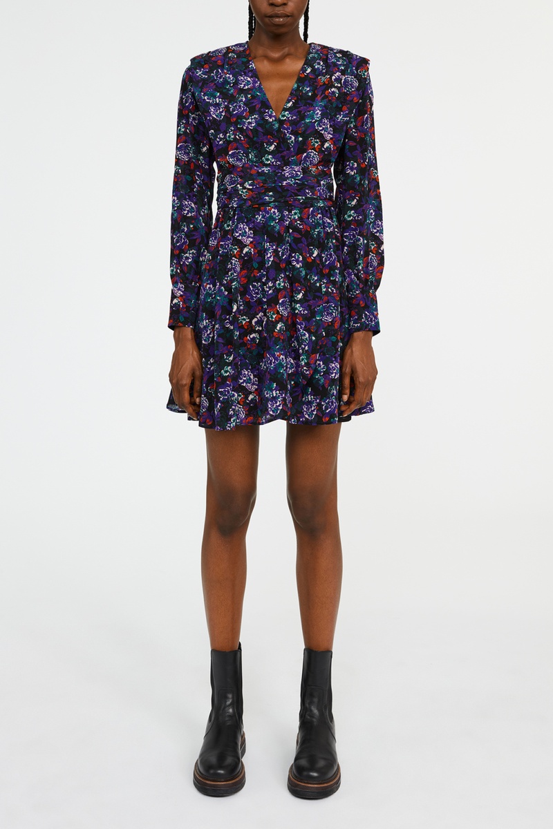 Vestido estilo patinadora em seda - Preto e violeta