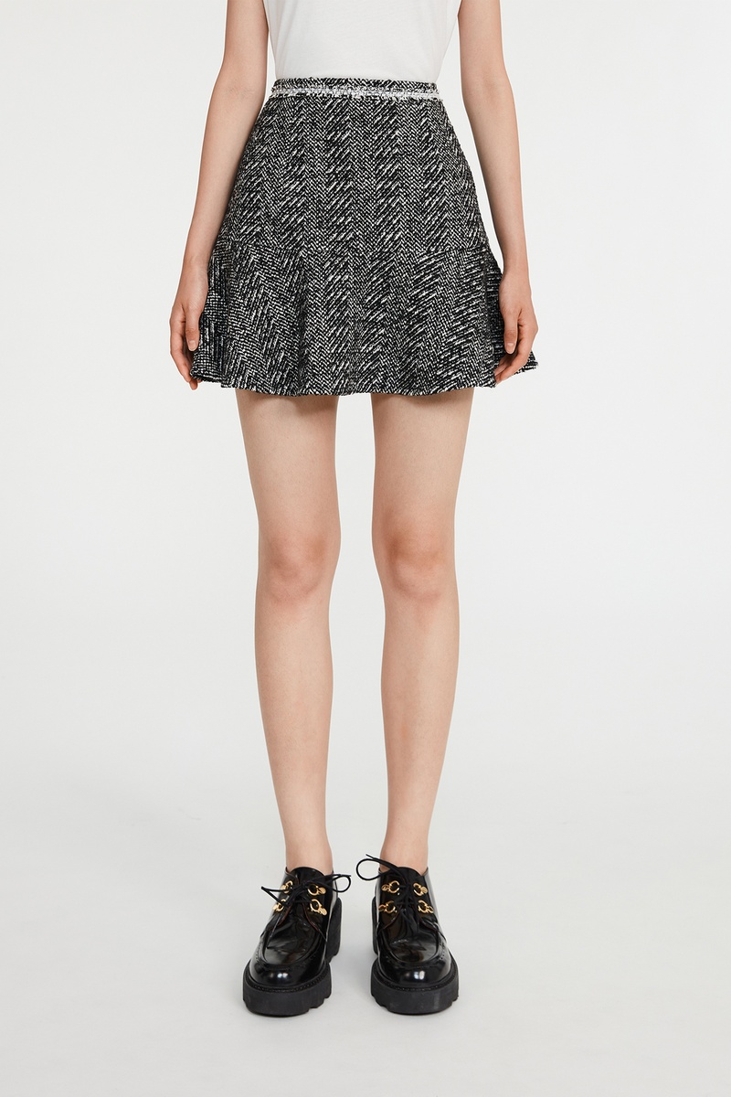 Saia estilo patinadora cintura subida - Preto e branco