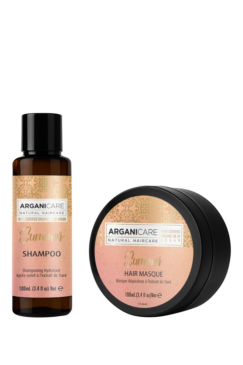 Cuide dos seus cabelos até em férias com o nosso duo pós-sol hidratante com Monoï, especialmente concebido para o formato viagem.