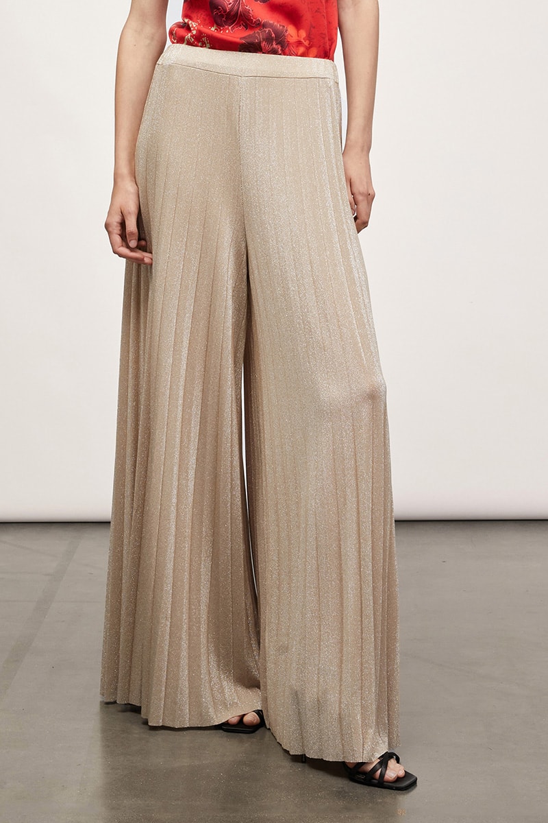 Calças palazzo plissadas.