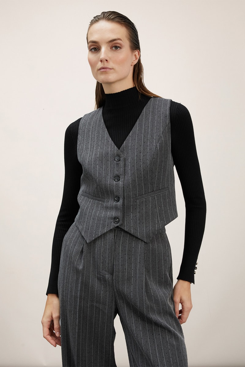O modelo mede 178 cm e veste o artigo no tamanho 40.